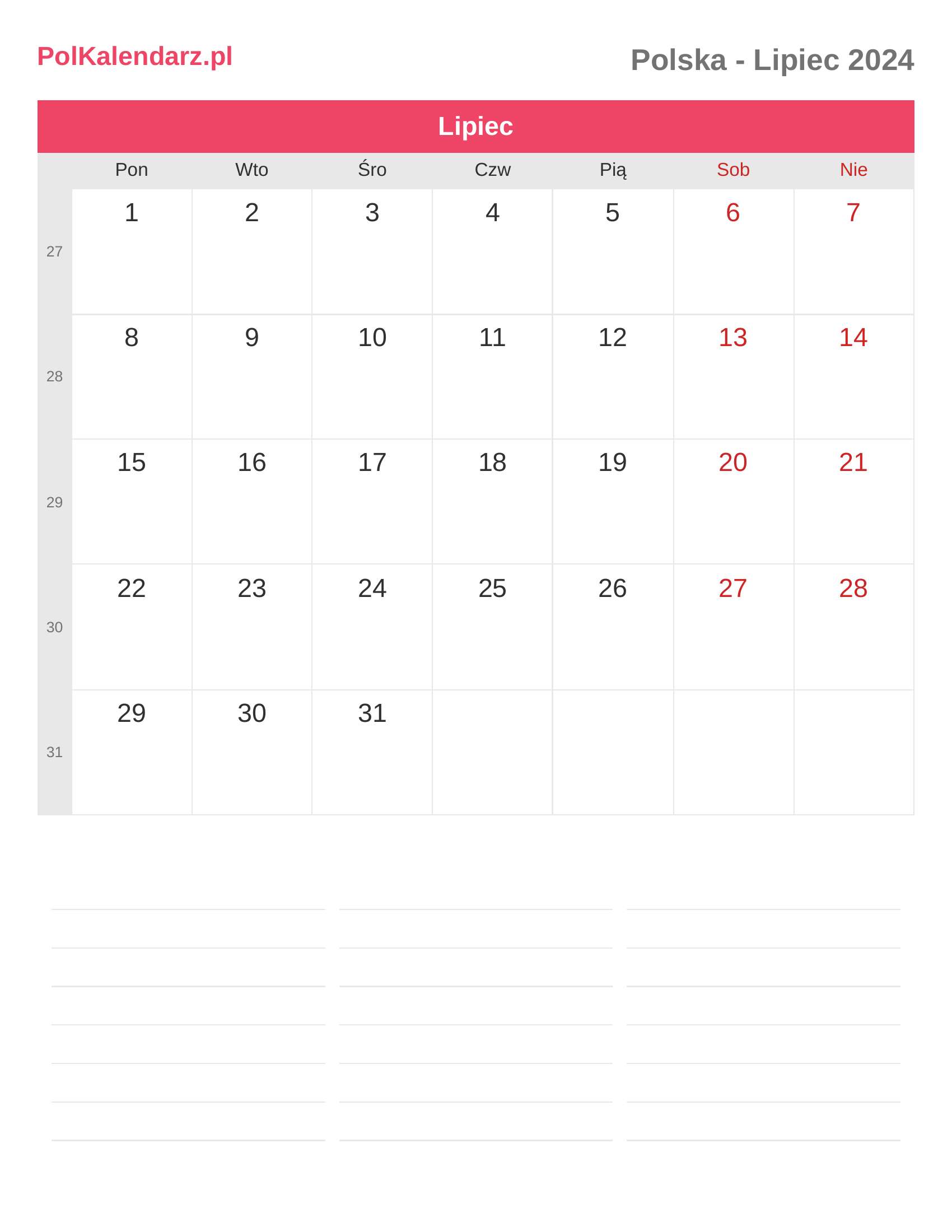 Kalendarz Lipiec 2024 - Polska