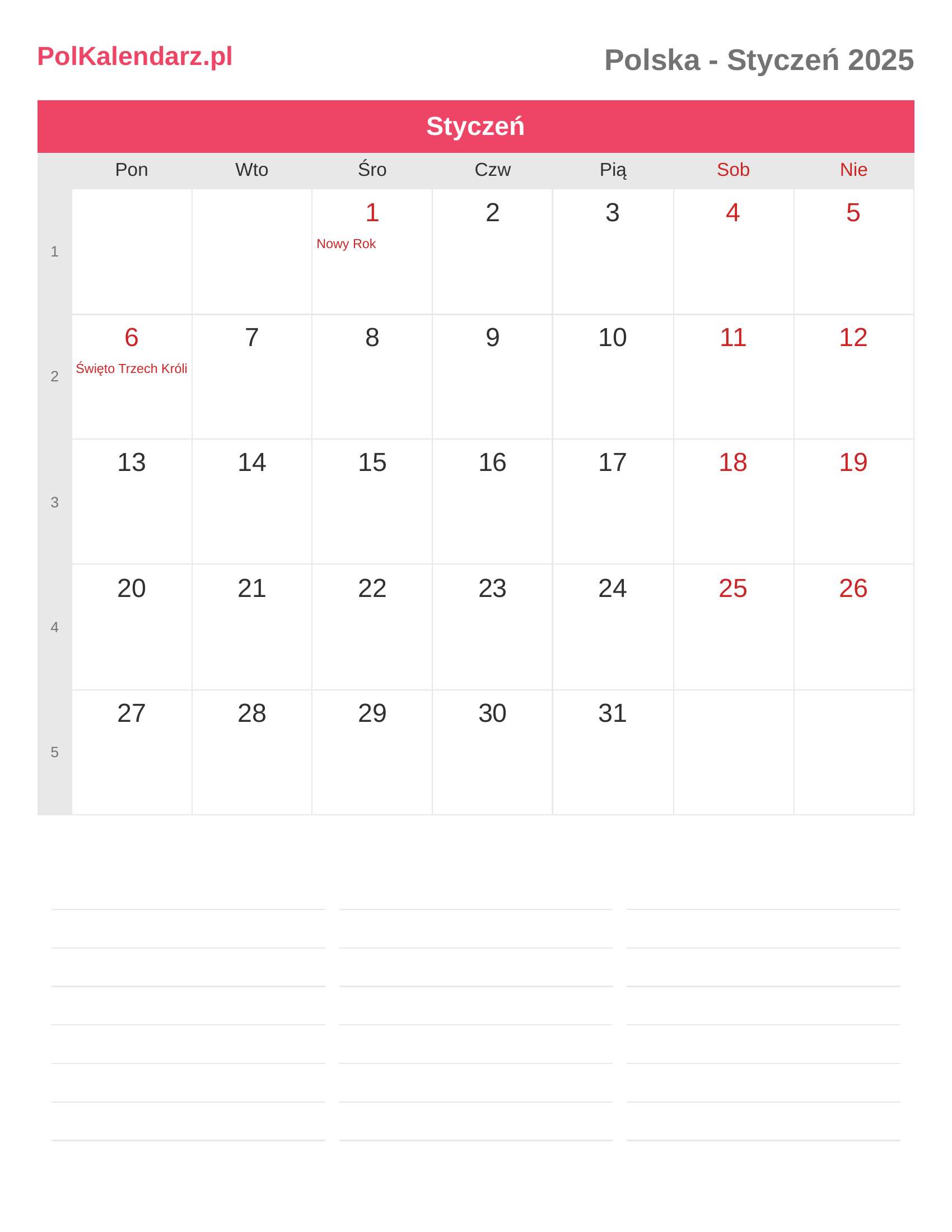 Kalendarz Styczeń 2025 - Polska