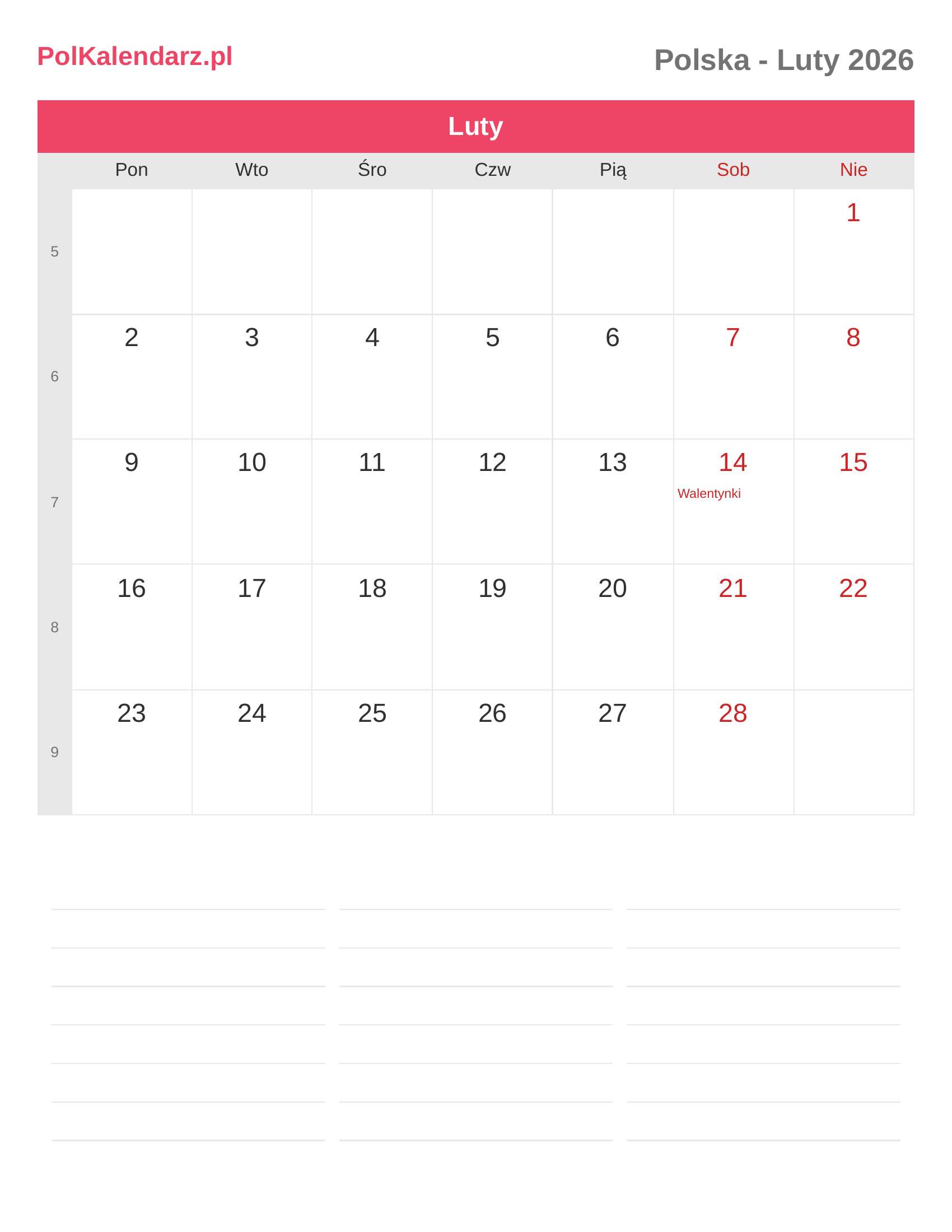 Kalendarz Luty 2026 - Polska